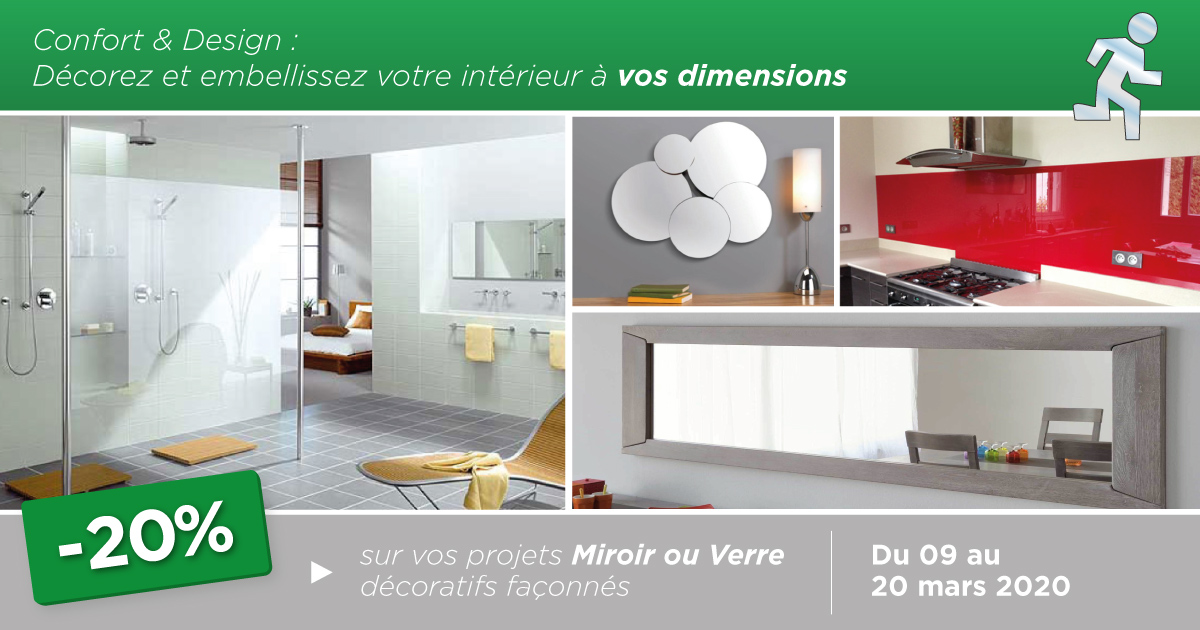-20% sur vos projets “Miroir ou Verre décoratifs façonnés” – du 9 au 20 mars 2020