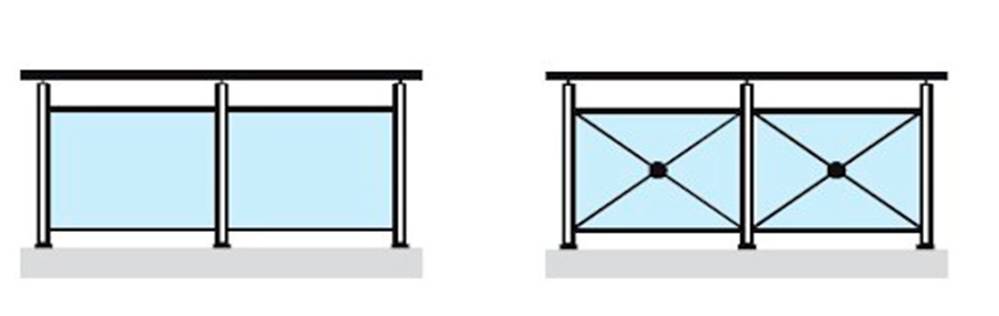 - Bande filante – Remplissage : verre feuilleté 8mm au choix (clair – bronze – réfléchissant – opaque et opale)